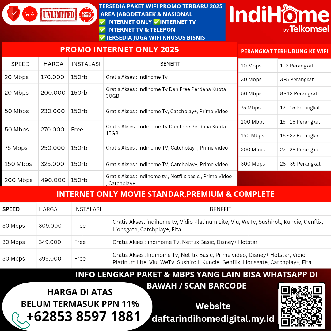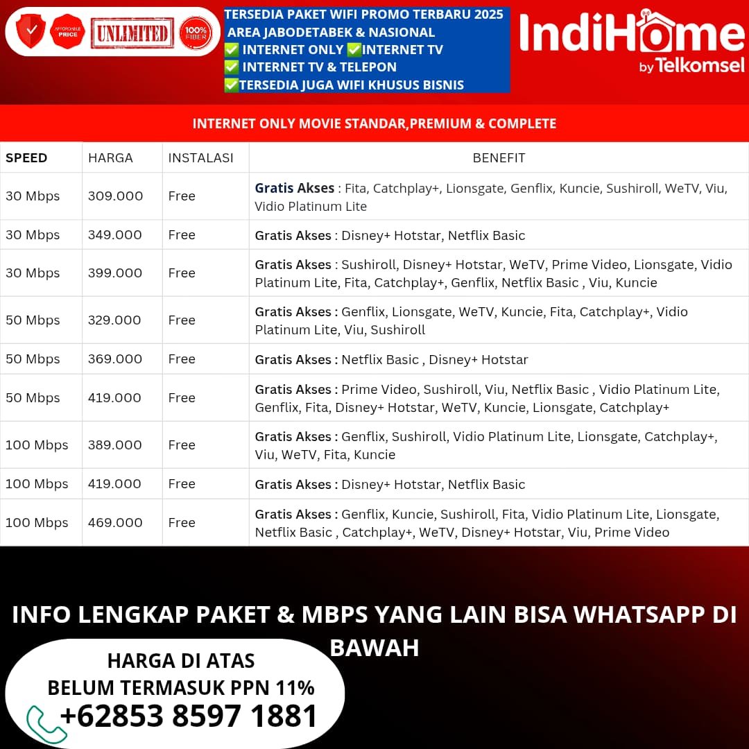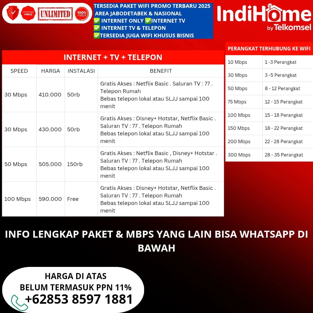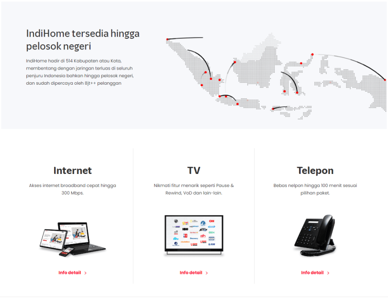 Selamat datang di IndiHome Bebas akses internet stabil, telepon rumah dan tayangan TV interaktif terpopuler dengan IndiHome. Miliki layanan internet terbaik di rumah sekarang juga. Solusi Internet Cepat, Berkelas, dan Cerdas untuk Aktivitas Tanpa Batas
